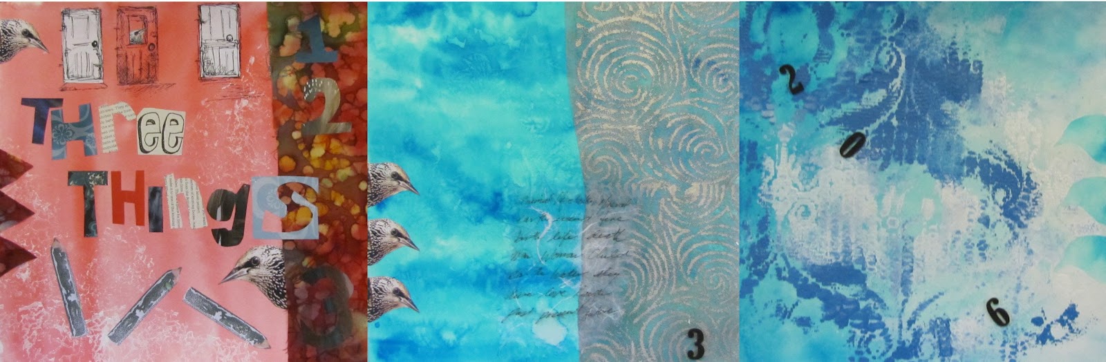 I layered this with a silver piece of chiffon over which I rubbed using oil paint sticks.